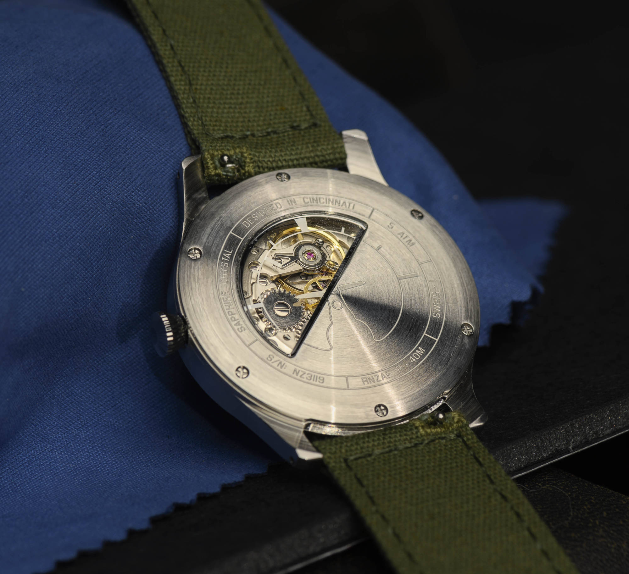 The P-40M Mechanical pilot watch is inspired by the Osh Kosh Grand Champion restoration of the P-40M by The Tri-State Warbird Museum in Cincinnati, Ohio.